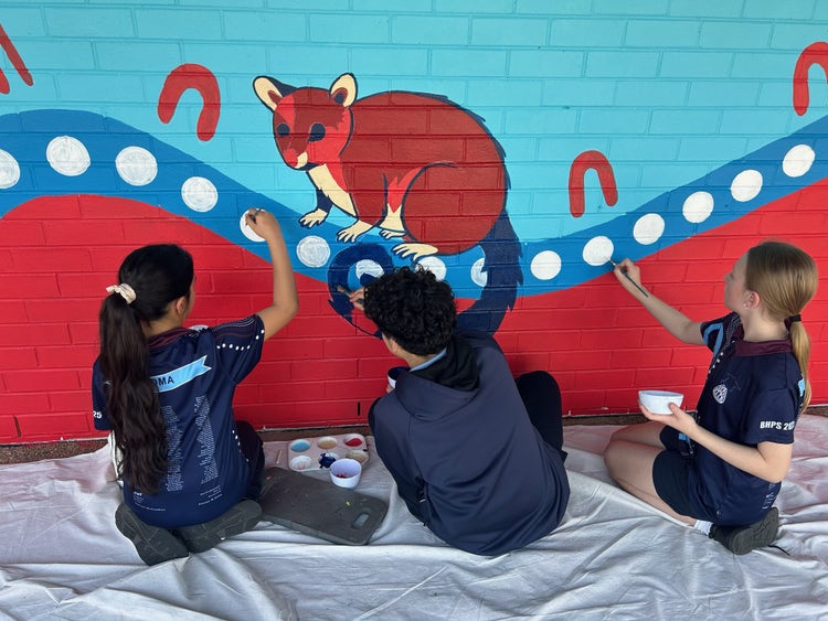 Our talented students are busy working with local Aboriginal artist, Michael Fardon, to design and create a storytelling mural representing our local community.